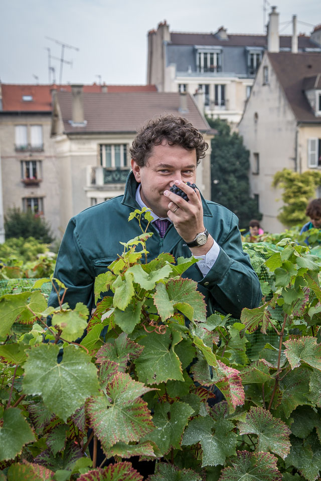 Chaque année, élus du XVIIIème, à Paris, agents des espaces verts de la ville et bénévoles du comité d'action sociale de l'arrondissement se retrouvent pour cueillir le raisin de la vigne de Montmartre, avant de le presser et le mettre en cuve dans les caves de la mairie. Vendue lors des fêtes des vendanges l'année suivante, la production de ce vin permet de financer les actions sociales du comité.